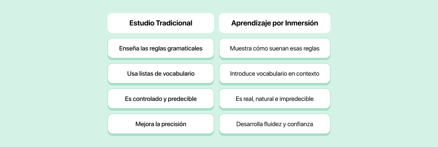 El estudio tradicional te dice qué significa una palabra. La inmersión te muestra cómo se usa. Esa es la combinación ganadora.