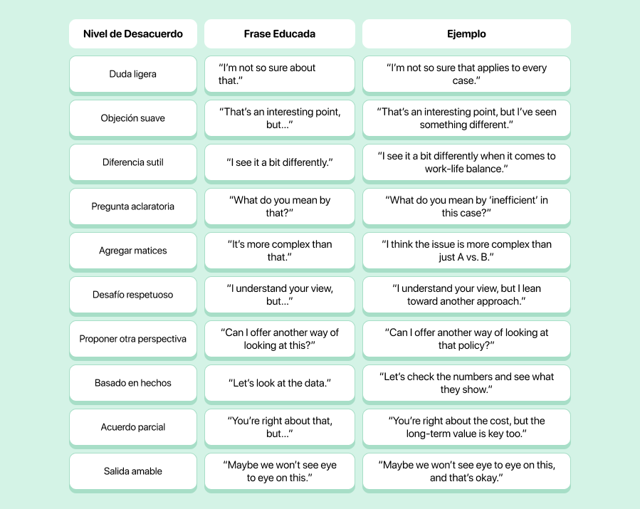 ¿El objetivo? Decir lo que piensas, mantener el respeto y que la conversación siga fluyendo. Vamos paso a paso.