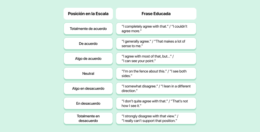 Esta escala, muy usada en encuestas, también sirve para expresar tu opinión en conversaciones reales de forma diplomática.