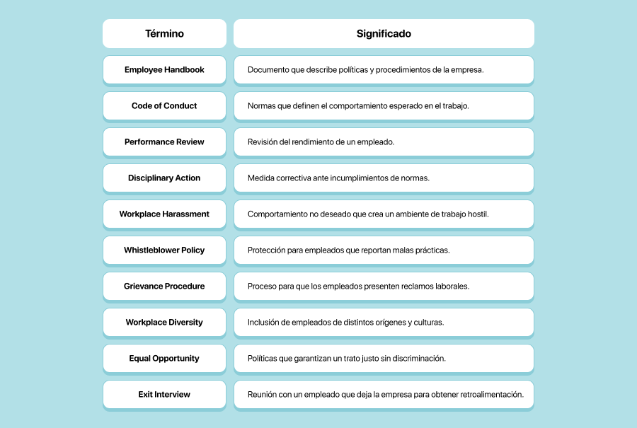 Dominar el inglés para recursos humanos es una habilidad clave en el mundo laboral actual. Ya sea que trabajes en reclutamiento, relaciones laborales o administración de nómina, conocer el vocabulario de RR. HH. adecuado hará tu trabajo más fácil y eficiente.
