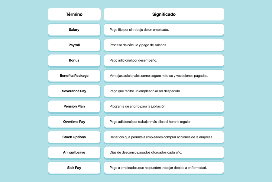 Hablar sobre salarios y beneficios requiere conocer términos específicos.