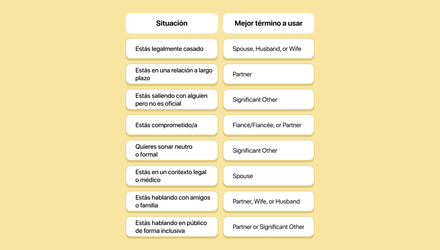 2. ¿Cuál es la diferencia entre “spouse”, “partner” y “significant other”?